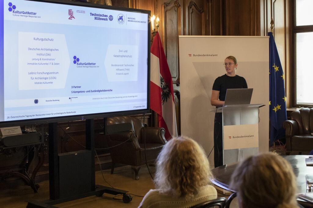 The KulturGutRetter project also attracted international interest. In September 2025, the mobile emergency conservation laboratory was presented at the 28th Austrian Conference of Restorers of Archaeological Finds in Vienna. Also in September, the CHRU was presented as part of a study day on emergency management in archives, organised by the Spanish National School of Civil Protection in collaboration with the Ministry of Culture.